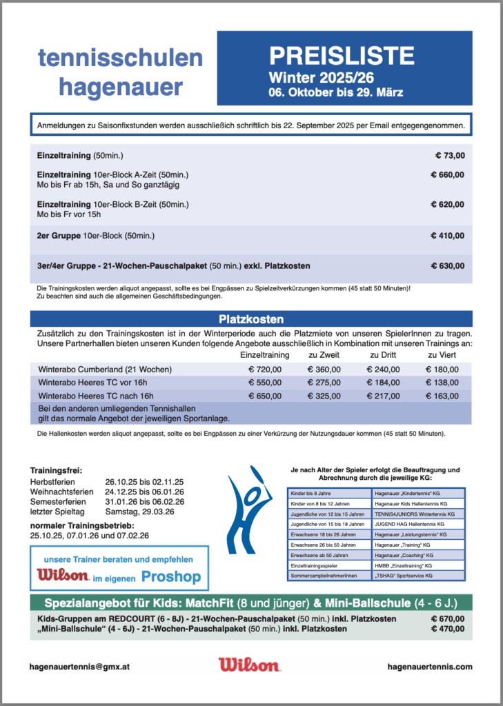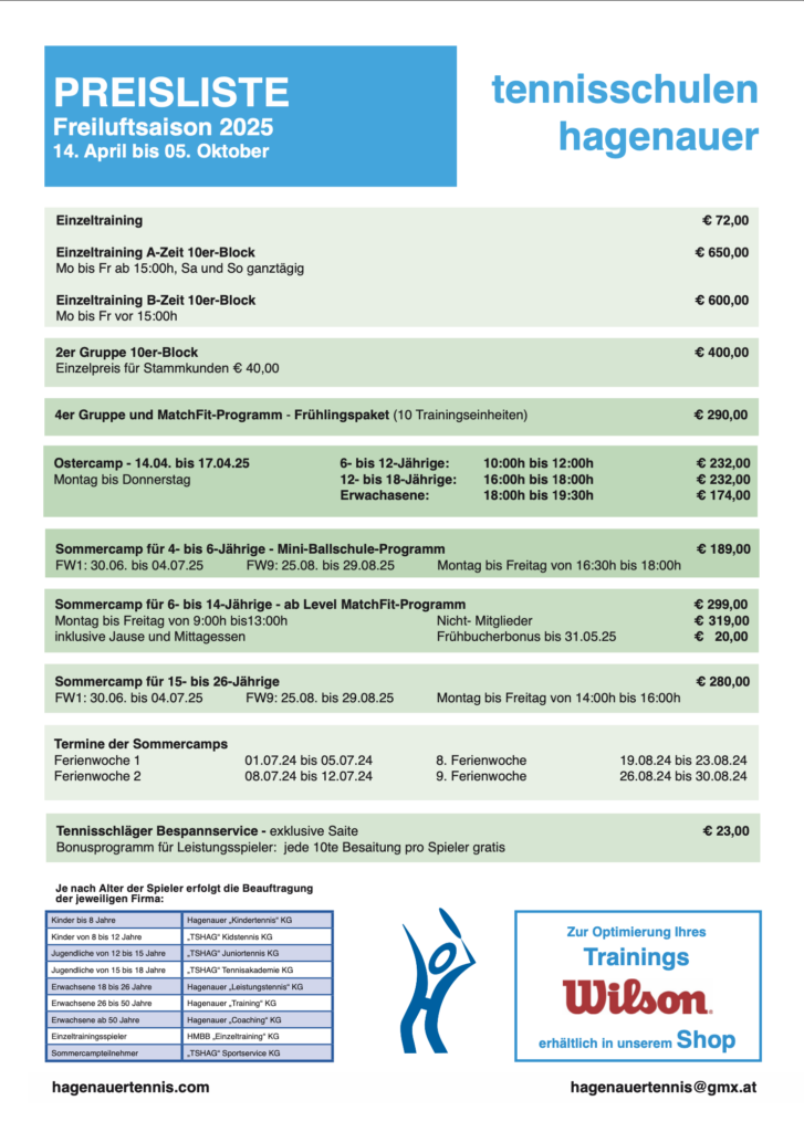 Unter der Marke Tennisschulen Hagenauer vereinen sich unterschiedliche Tennisschulen, in denen hochqualifizierte Expertinnen und Experten gezielt am Fortschritt der Spielerinnen und Spieler arbeiten.